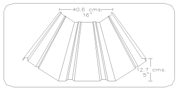 Es un acanalado recto engargolado para techos planos y muros verticales o cabeceros de gran resistencia de 16” de ancho (0.406 mts.) puede usarse en cubiertas con aislante, losas compuestas, grandes claros sin apoyos intermedios y retechados. |